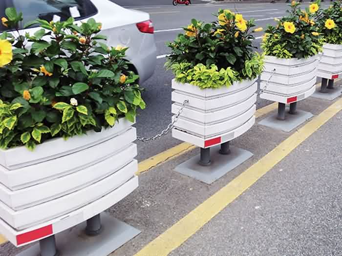 在道路綠化時,要保證道路有足夠的空間。在選擇道路花箱時就需要注意花箱的尺寸